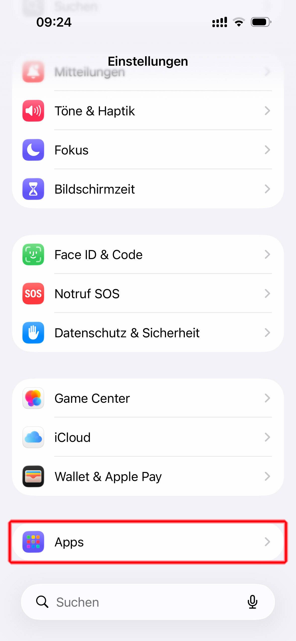 Scrollen Sie ganz nach unten und klicken Sie auf "Apps"