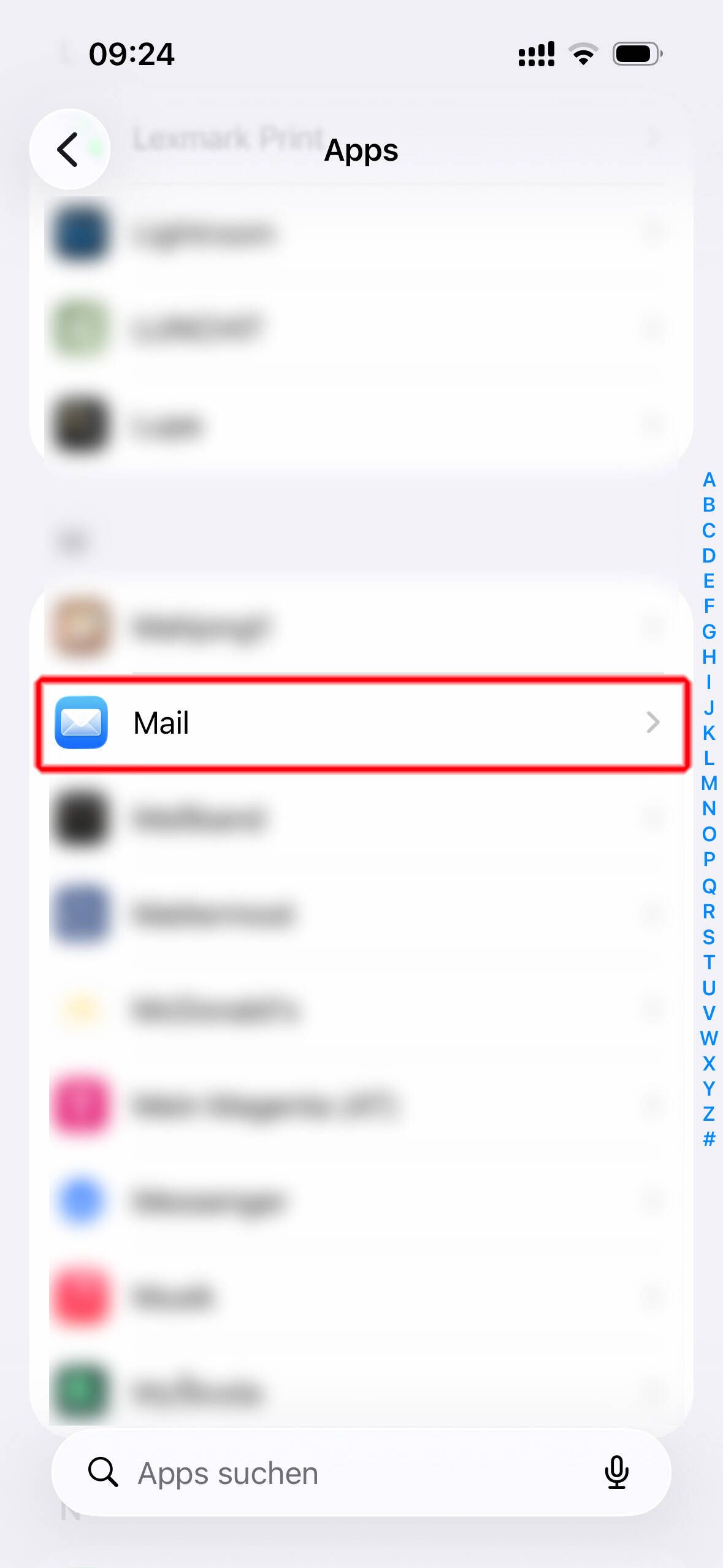 Wählen Sie die App "Mail" in der Liste