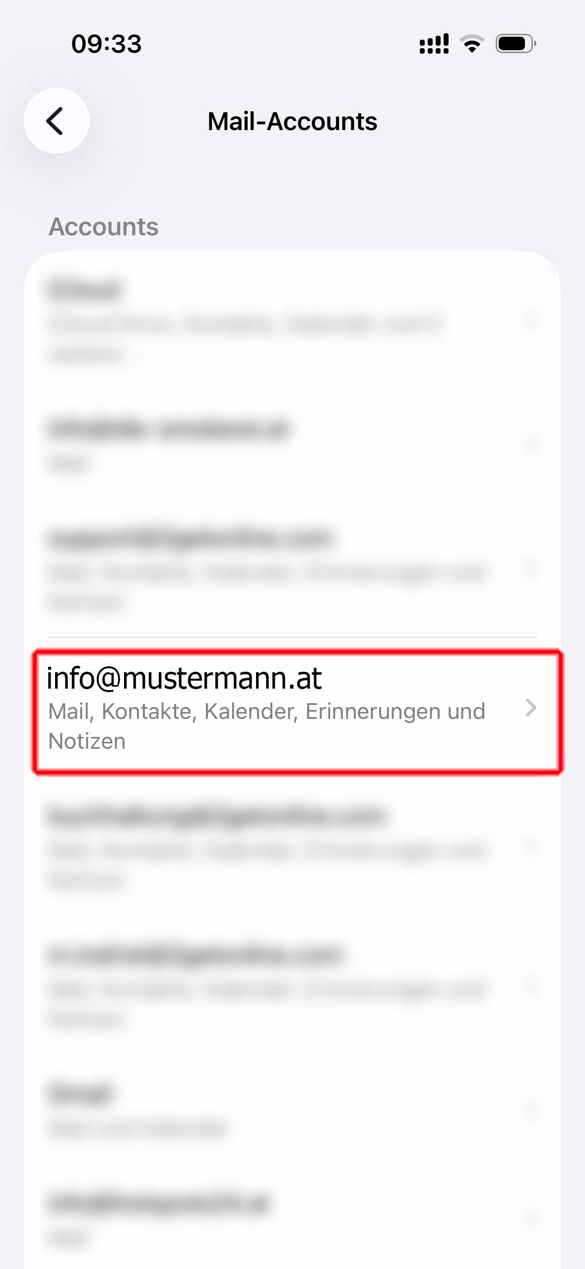Wählen Sie "Mail-Accounts" aus!